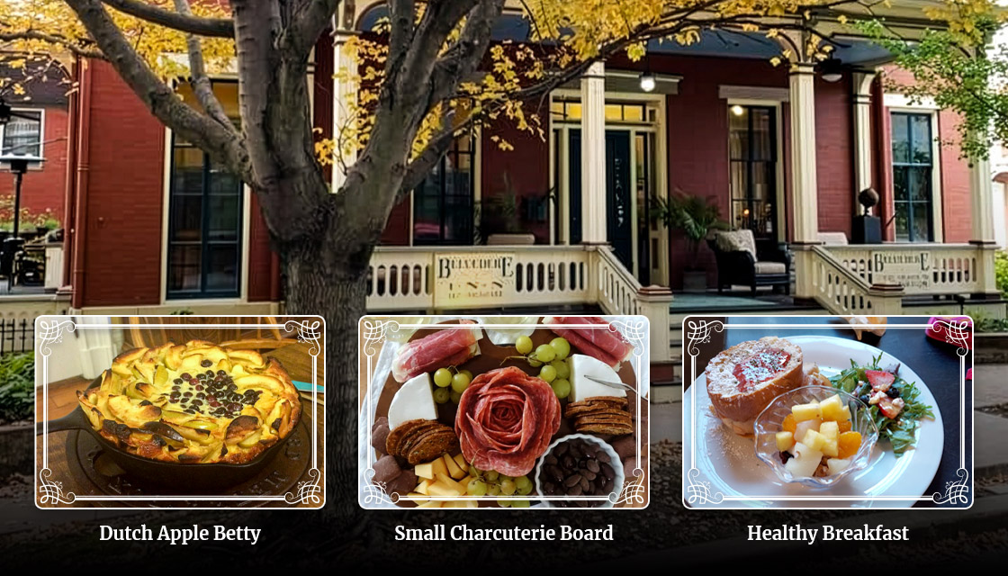 Our breakfasts are wonderful! They are made from scratch – no boxes or cans – and include juice, fruit, a main course, meat and a little sweet. Freshly ground, dark roast coffee rounds out the meal and starts your day off right. Welcome Home to the Belvedere Inn…Pat Berg Yapp & Bob Yapp